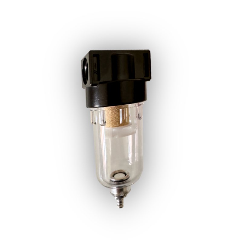 Υδατοπαγίδα φίλτρο αέρος 1/4″ για δέσμευση υγρών στοιχείων κατα την έξοδο του αέρα από συμπιεστή αέρα με αποτέλεσμα ο αέρας να μην έχει παγιδευμένα υγρά κατάλοιπα.